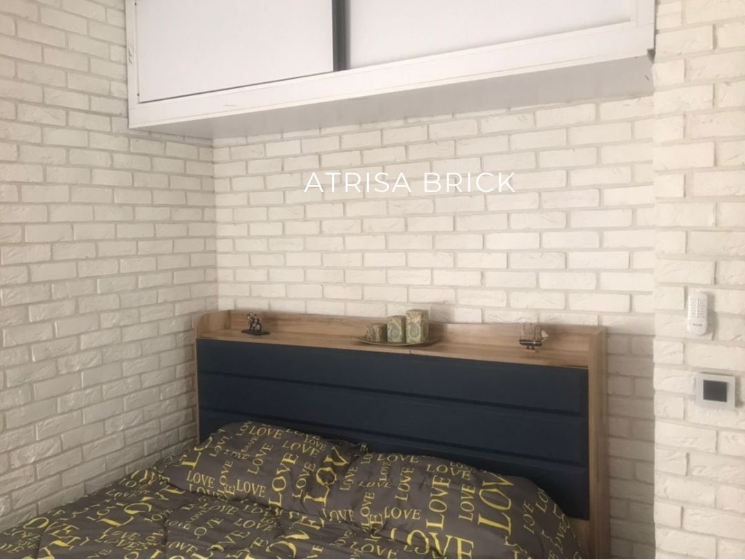 استفاده آجر دکوراتیو سفید آتریسا برای دیوار پشت تلویزیون