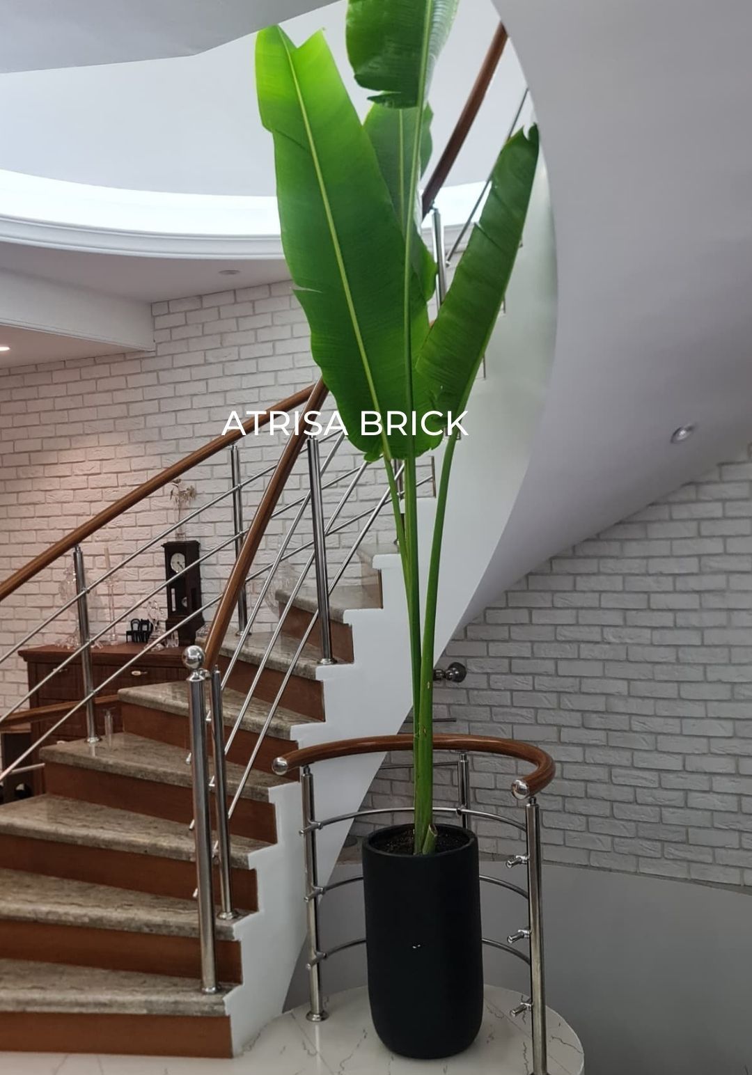 استفاده از آجر دکوراتیو سفید آتریسا برای دیوار راه پله ها